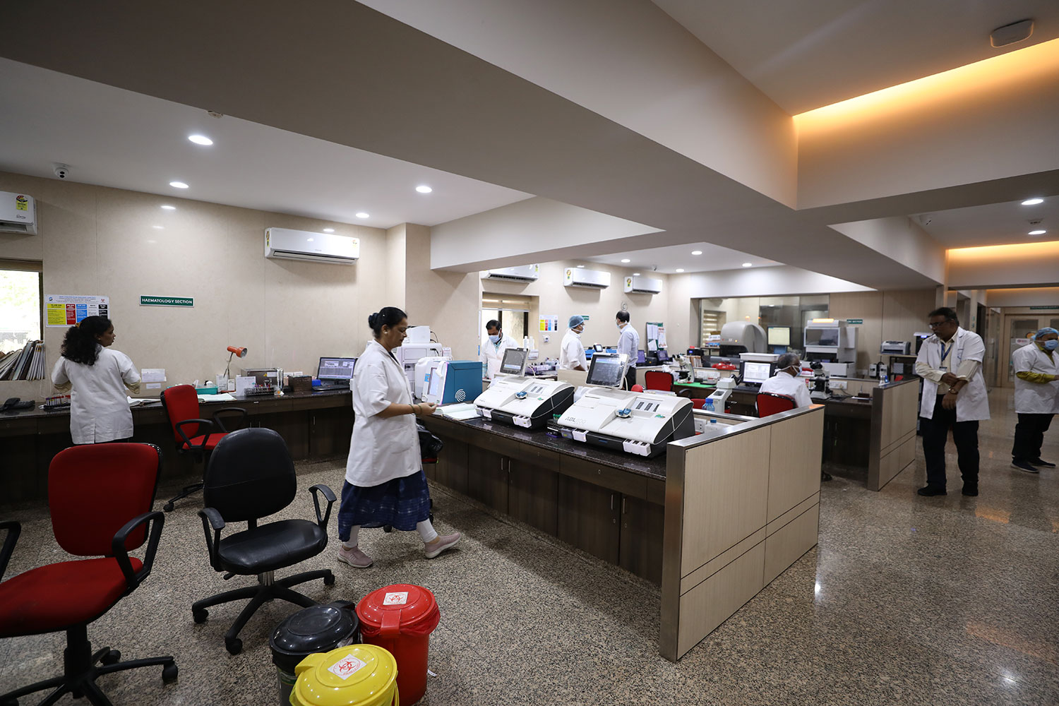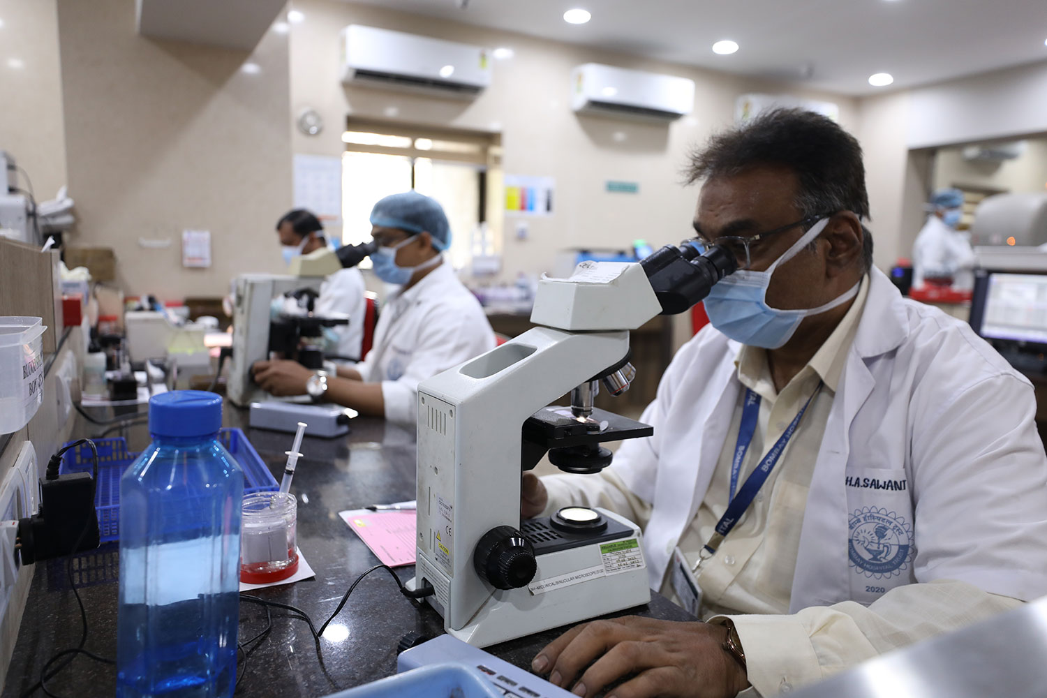 The Department of Pathology of Bombay Hospital is one of the largest and most modern laboratories in the country. It’s quality and accuracy of lab. reports serves as a gold standard to clinicians and patients. The laboratory is equiped with state of art fully automated equipments from leading equipment manufacturers like Roche, Siemens, Abbott, Coulters, Sysmex, Becton Dickenson , which has reduced the human interference to minimum there by reducing the chances of error. Operated by a team of highly dedicated, sincere and experienced technical staff who is fully committed to maintain the high standard of work and accuracy of reports. To achieve this the laboratory is always vigilant and a rigid quality control system is followed.