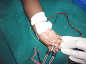 - No shocks are givenThe Needle is inserted just into the muscle for few