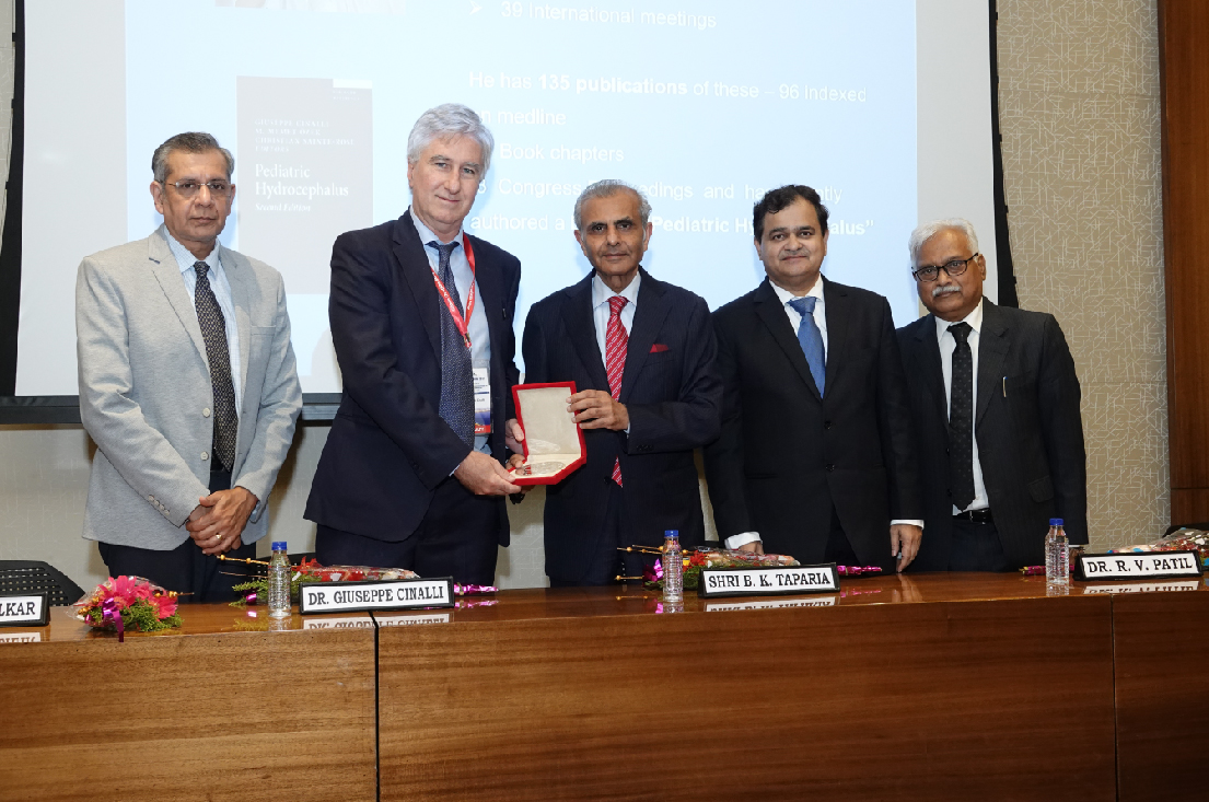 The Oration this year was delivered by Dr. Giuseppe Cinalli (Head of Pediatric Neurosurgery at Santobono – Pausilipon hospital of Naples, Italy), who is also the President of International Federation of Neuroendoscopy (IFNE). The Honourable Chairman, Shri Bharat Taparia felicitated the Ginde Orator and was joined by the Medical Director Dr. R.V. Patil, Dean Dr. S. V. Khadilkar and Head Of Neurosurgery Dr. C. E. Deopujari in welcoming the numerous National & International Faculties.