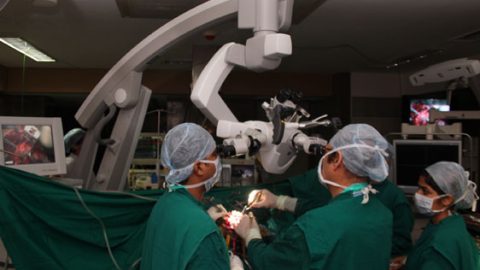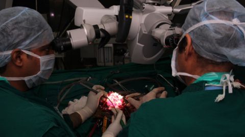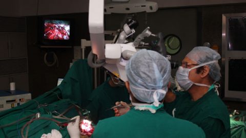 Neurovascular surgery involves surgery on problems associated with the blood vessels of the brain and spine. This includes a wide variety of problems like aneurysms, arterio-venous malformations (AVM), stroke surgery due a blood clot or an infraction. Many a time these procedures need to be performed in an emergency setting. A useful aid during these complex surgeries is Indocyanine Green Angiography. This is a special dye which is injected when the surgeon needs to check the completeness of the procedure on the operating table itself. Using a special filter attached to the Zeiss Pentero microscope, the fluorescent dye lights up the blood vessels in the operative field.